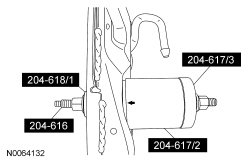 NOTE: When installing the RDU (Rear Drive Unit) bushing, 204-617/2 will fall away as the RDU (Rear Drive Unit) bushing is installed into the subframe. The Rear Drive Unit (RDU) Bushing Remover/Installer does not control the depth of the bushing, continue to tighten the nut until the RDU (Rear Drive Unit) bushing is fully seated into the subframe.