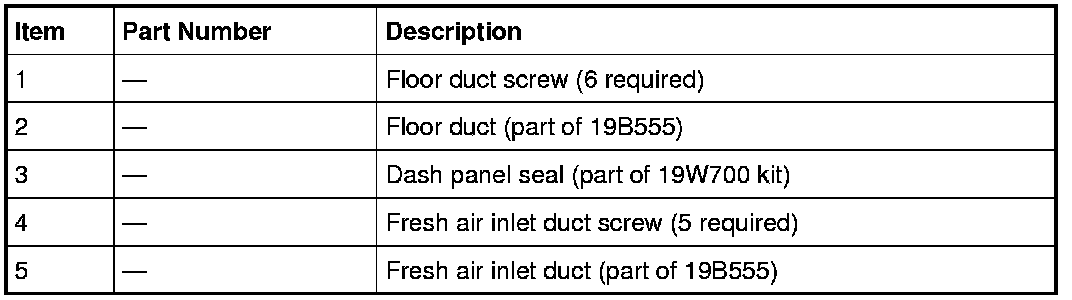 5. Remove the 5 fresh air inlet duct screws and the fresh air inlet duct.