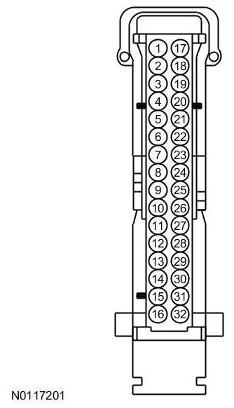 Powertrain Control Module (PCM) Connector - For PCM connector views or reference values, refer to Reference Values.