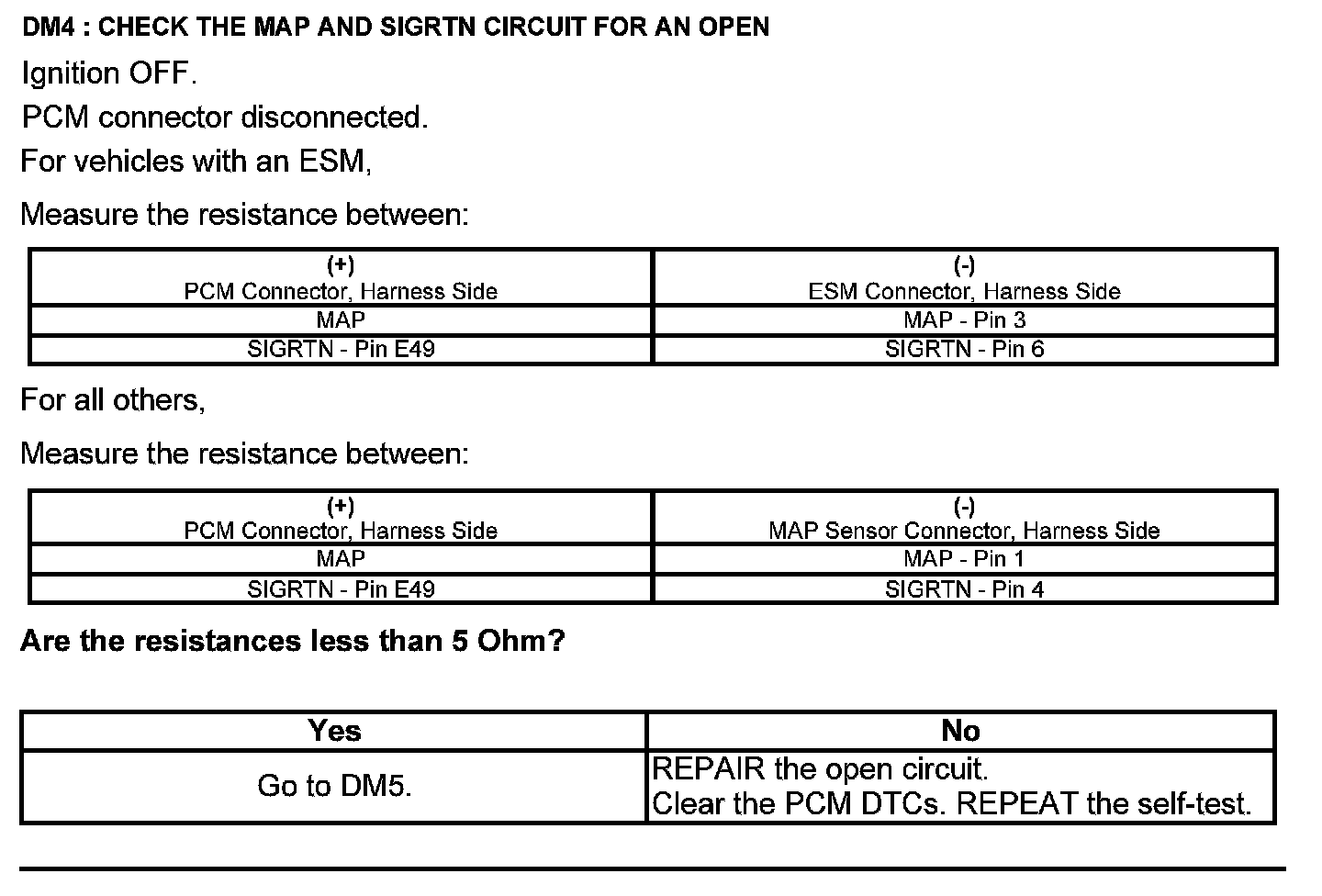 Test DM: Manifold Absolute Pressure (MAP) Sensor