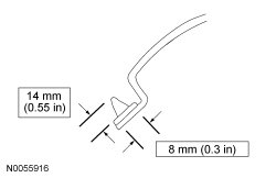 Using an appropriate tool, trim the urethane adhesive leaving a 1 mm (0.04 in) to 2 mm (0.08 in) base of original equipment urethane adhesive on the pinch weld.