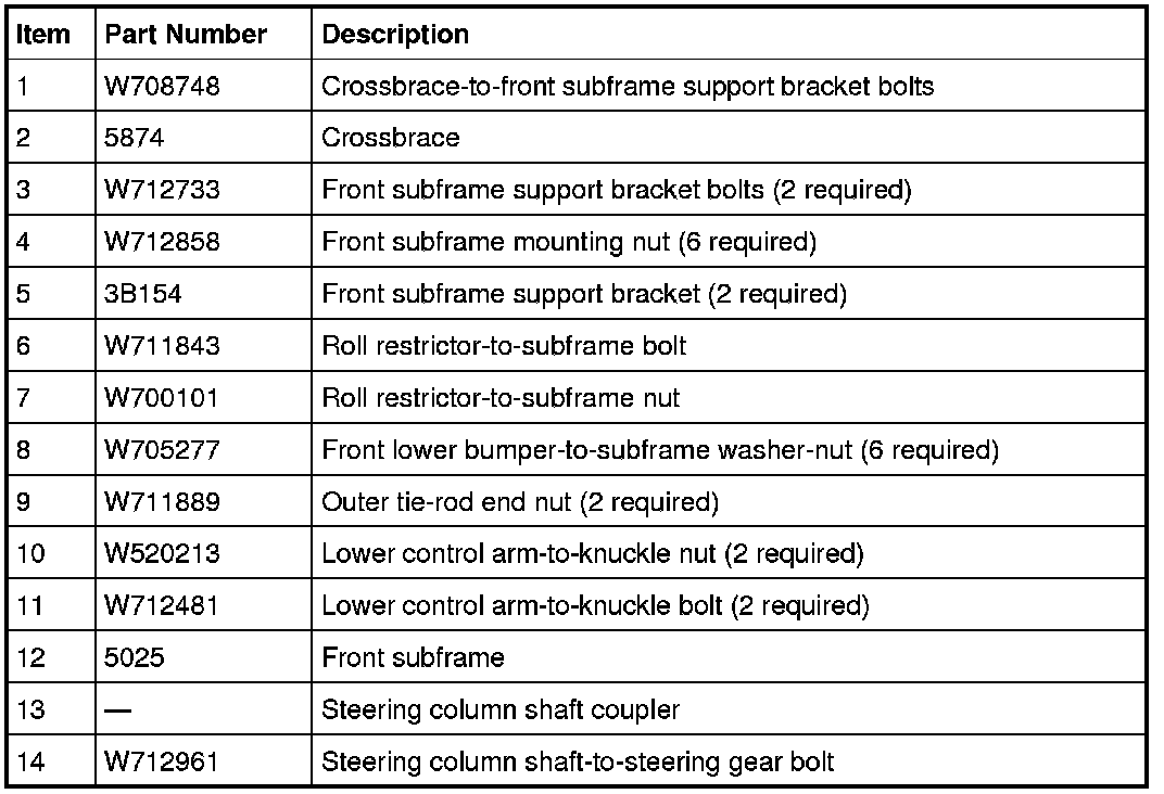 NOTICE: Suspension and subframe fasteners are critical parts because they affect performance of vital parts and systems and their failure may result in major service expense. A new part with the same part number must be installed if installation becomes necessary. Do not use a replacement part of lesser quality or substitute design. Torque values must be used as specified during reassembly to make sure of correct retention of these parts.