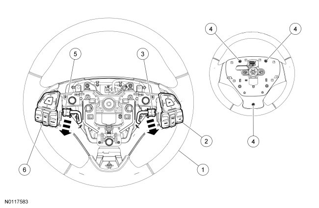 NOTE: Steering wheel trim panel and air bag shown removed for clarity