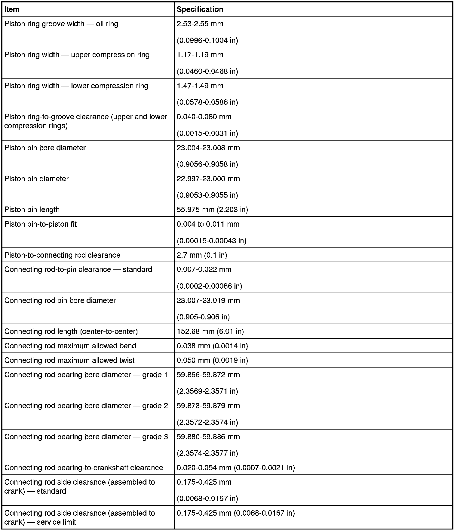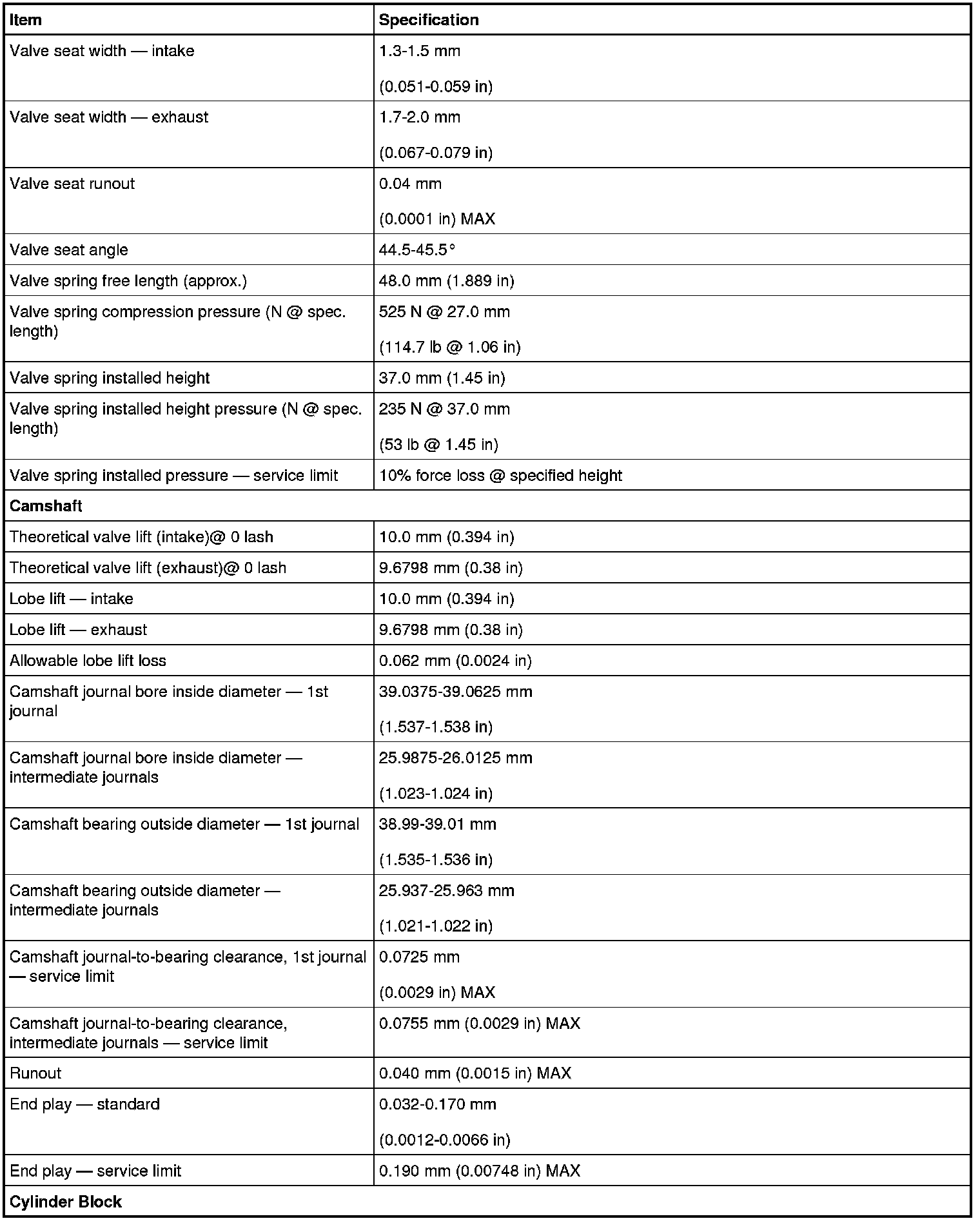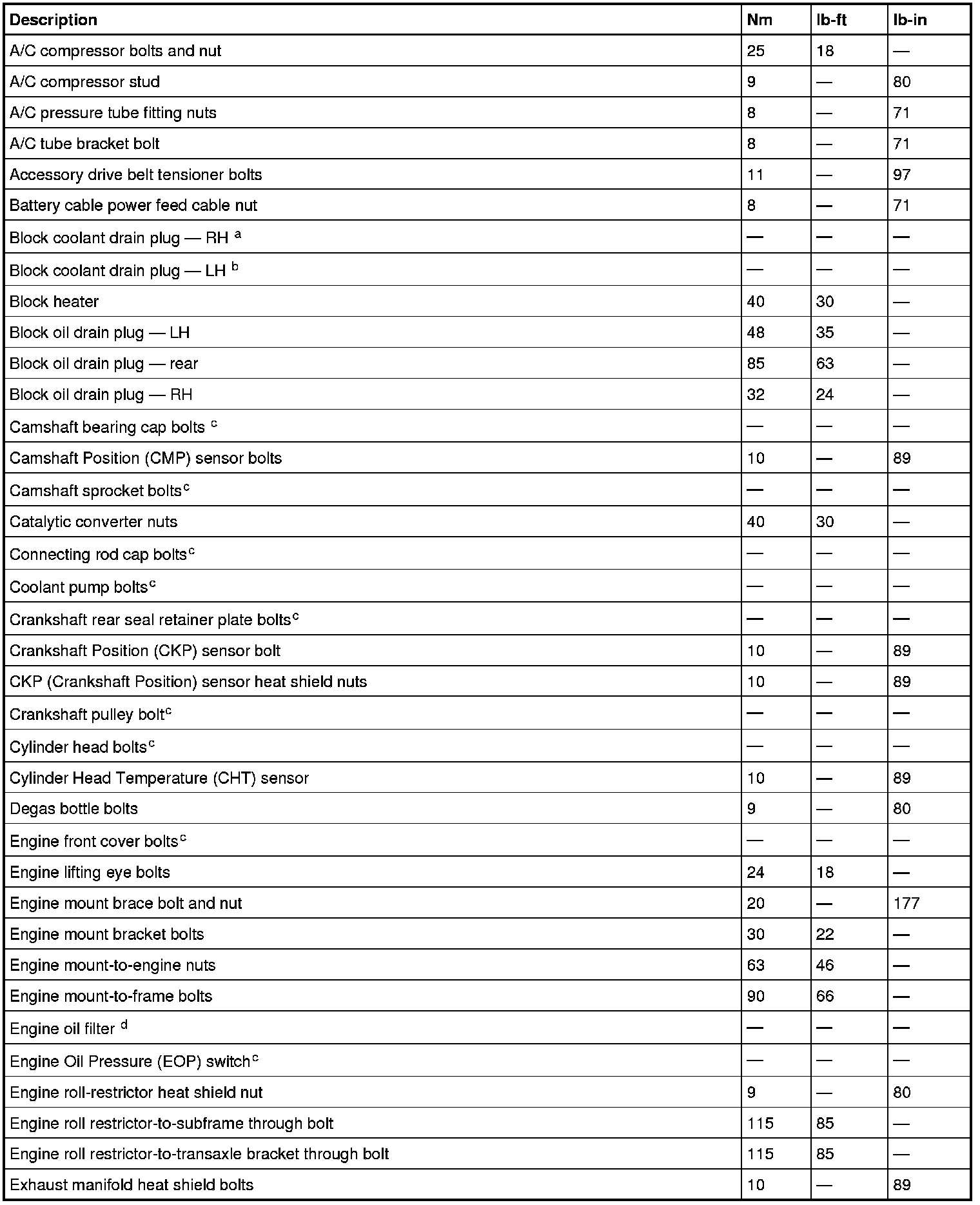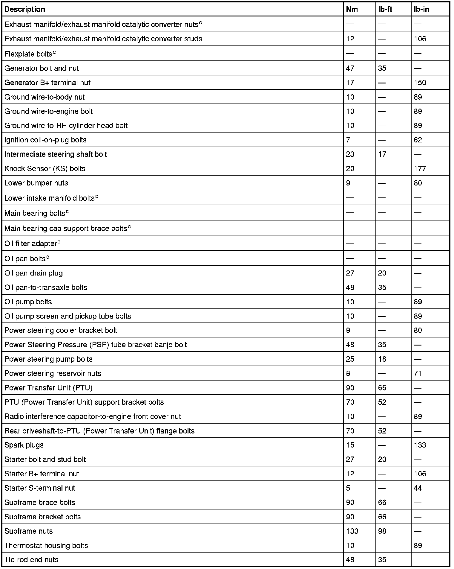 Torque Specifications
