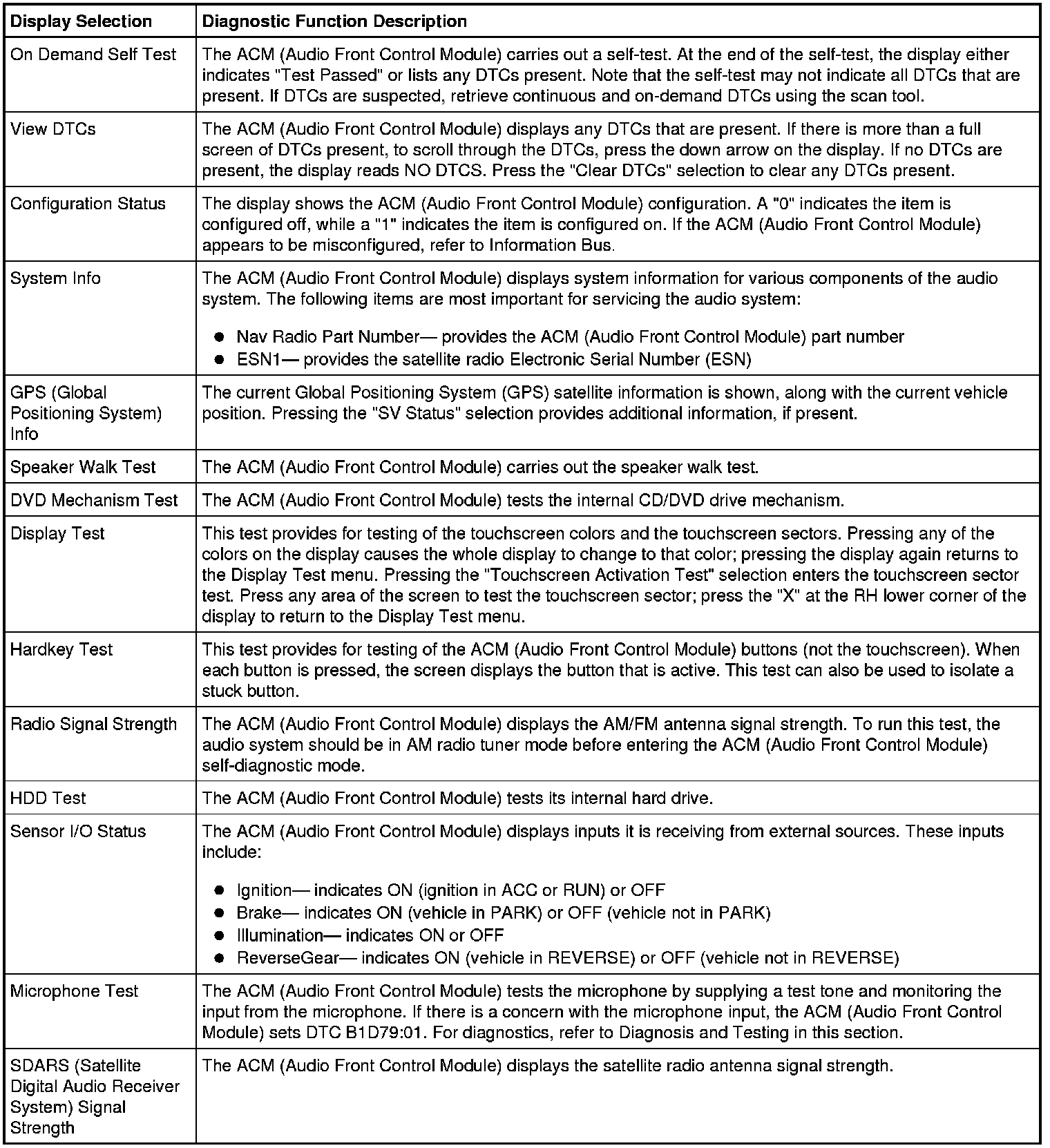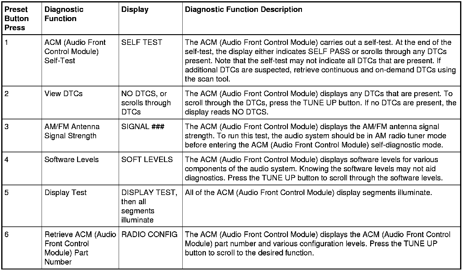 Audio Control Module (ACM) Self-Diagnostic Mode