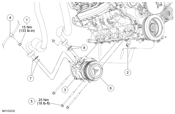 NOTICE: If installing a new Air Conditioning (A/C) compressor due to an internal failure of the old unit, the following procedures must be carried out to remove contamination from the A/C system. Failure to remove contamination from the A/C system, if present, will result in poor A/C performance and/or damage to the new A/C compressor and other components.