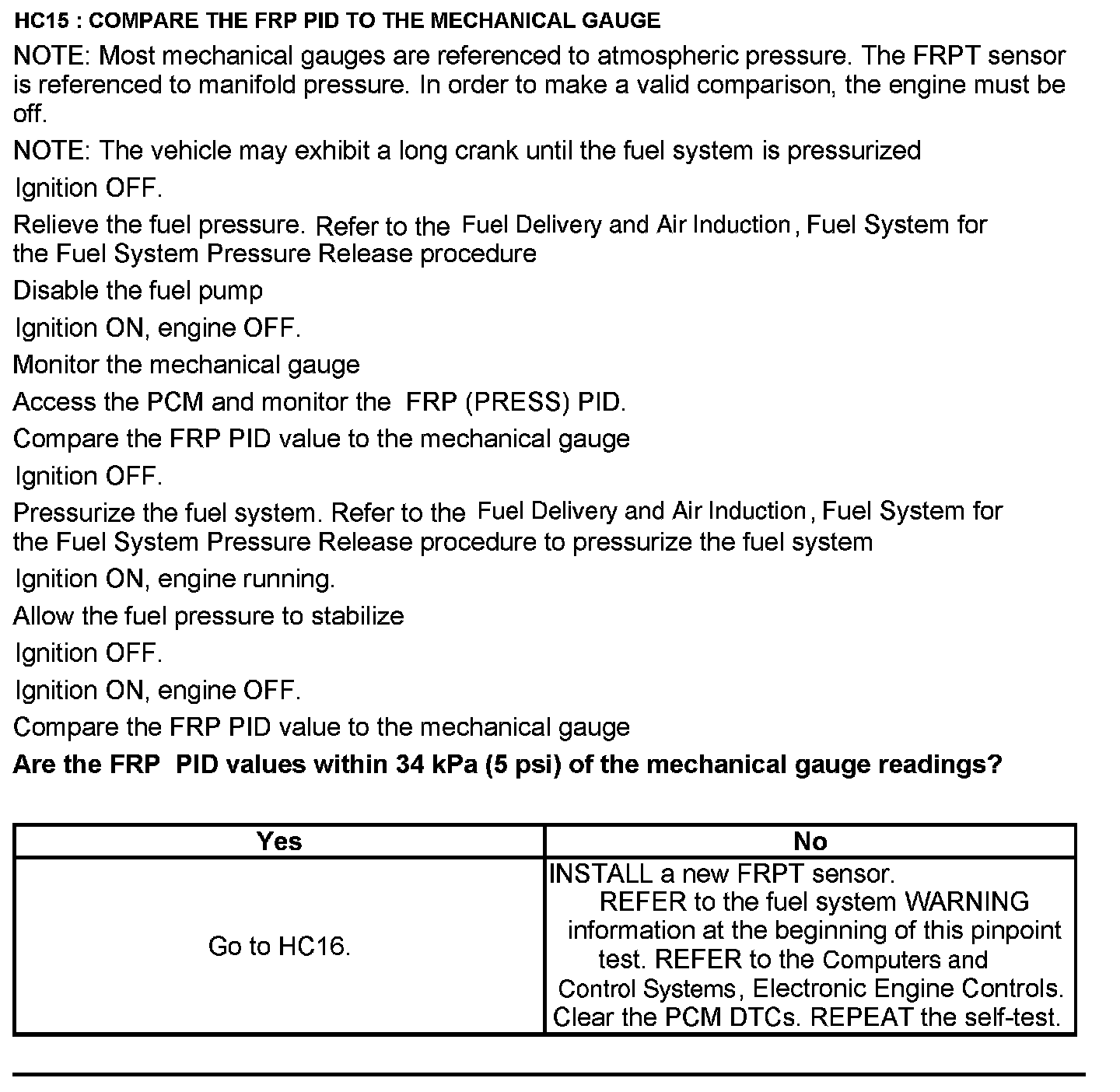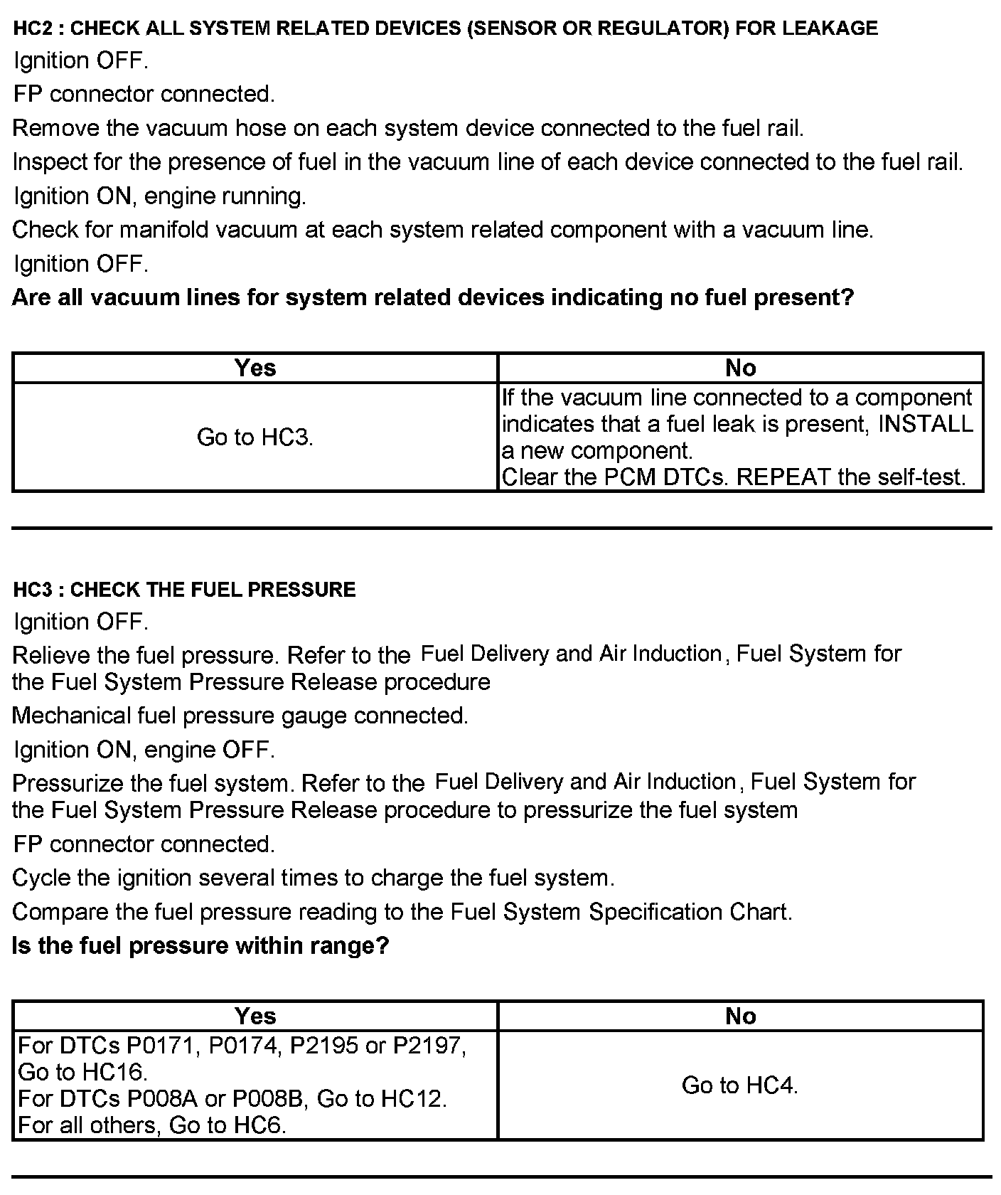 Test HC: Fuel Delivery System