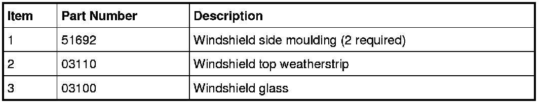 NOTE: If the windshield glass is being removed to repair a dust/water leak, remove and reinstall the existing windshield glass.