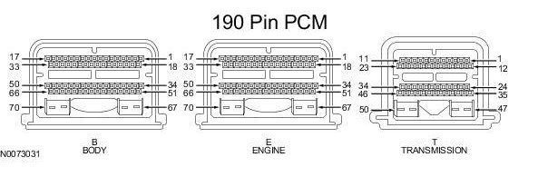 Powertrain Control Module (PCM) Connector - For PCM connector views or reference values, refer to Reference Values.