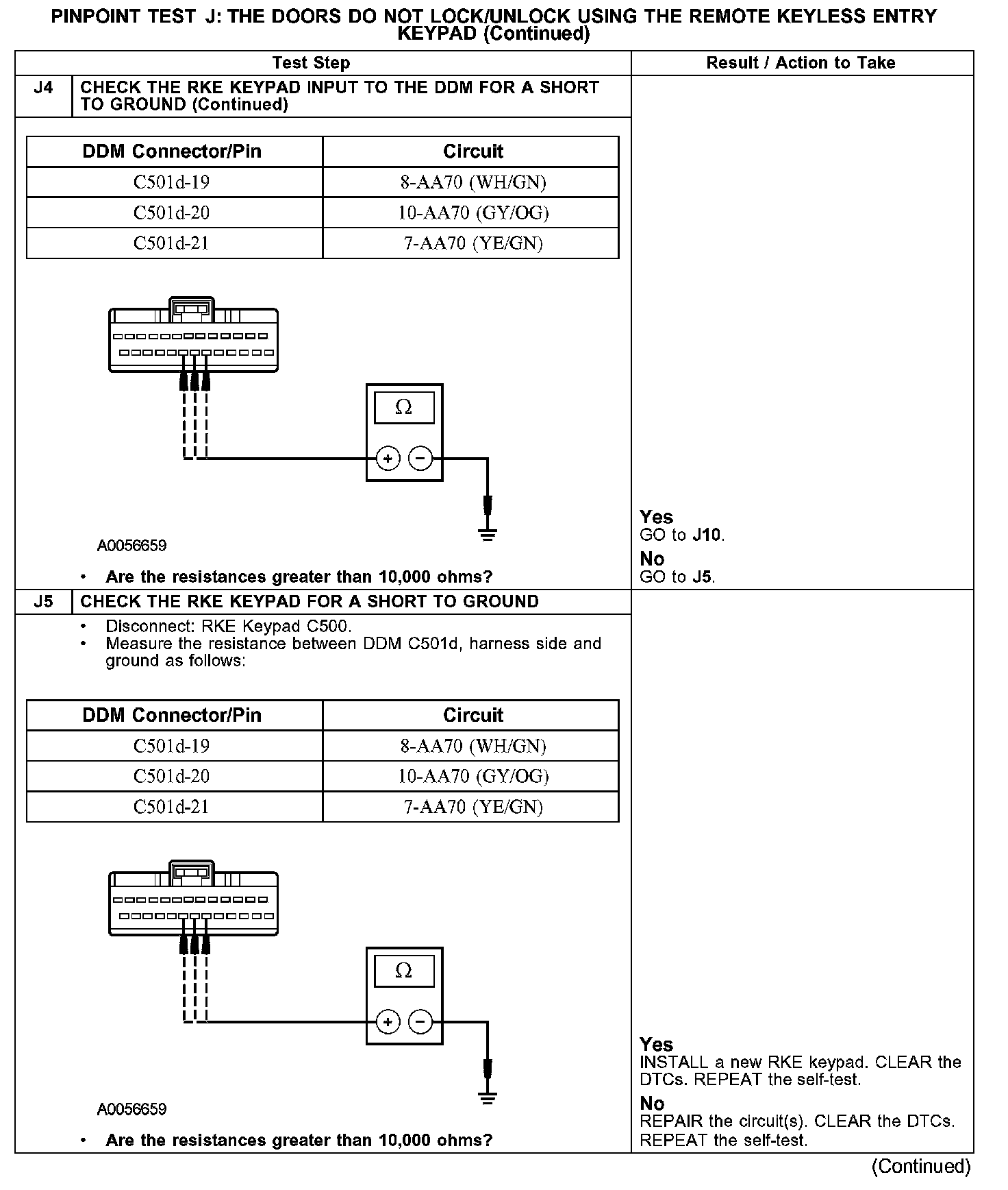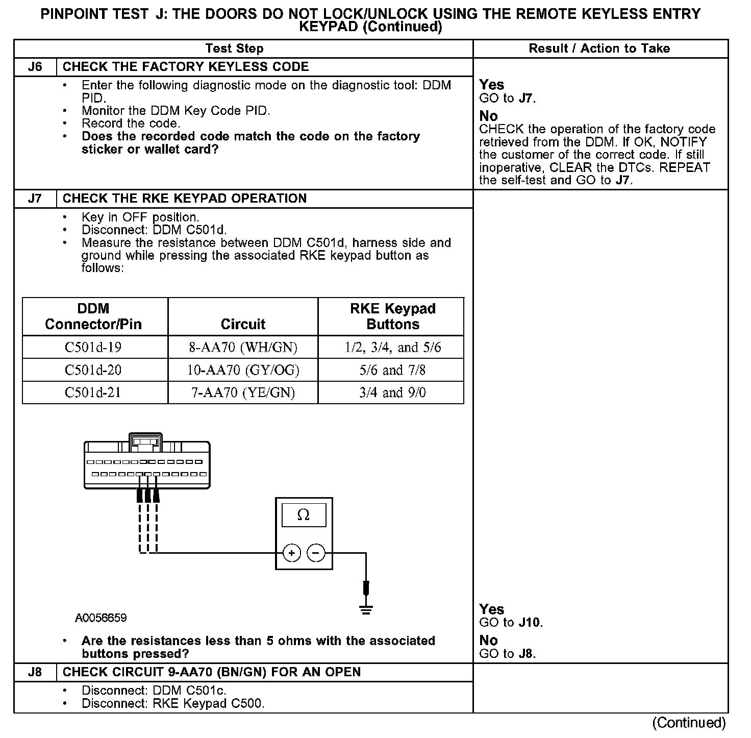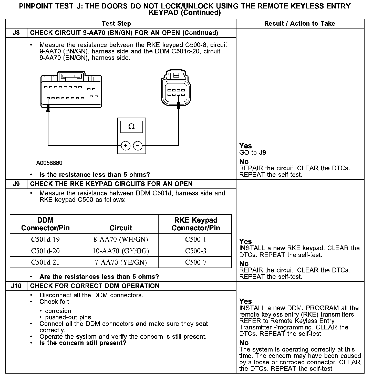 Test J: The Doors Do Not Lock/Unlock Using The Remote Keyless Entry Keypad