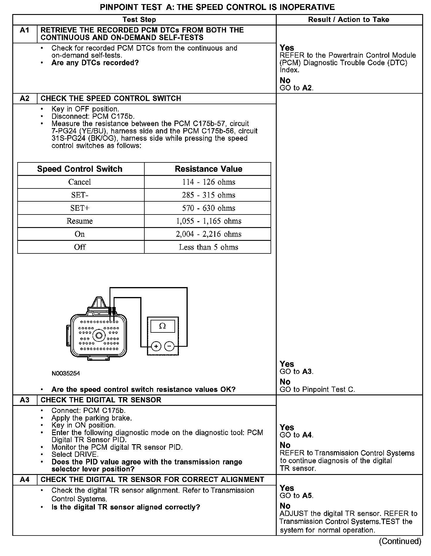 PINPOINT TEST A: THE SPEED CONTROL IS INOPERATIVE