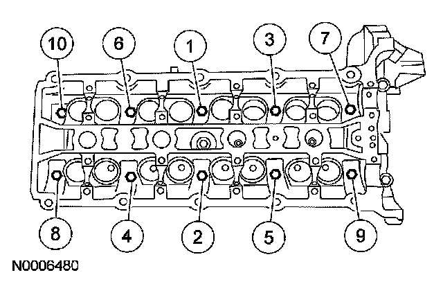 ^ Stage 2: Tighten bolts 1 through 10 to 35 Nm (26 ft. lbs.).