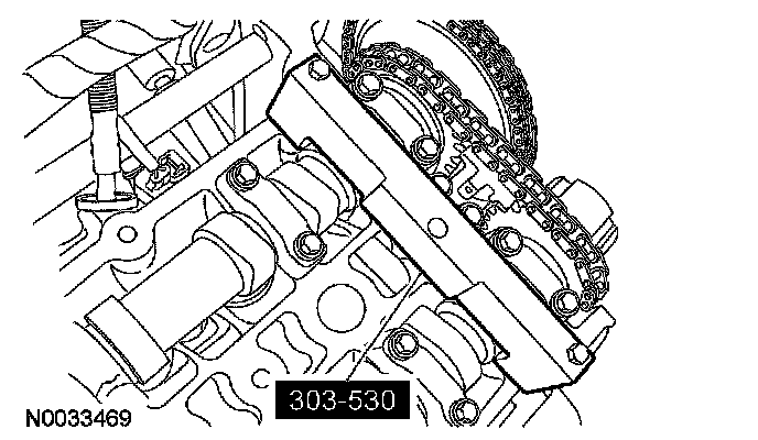 CAUTION: Using the special tool, apply 10 Nm (89 inch lbs.) counterclockwise to the RH exhaust camshaft sprocket.