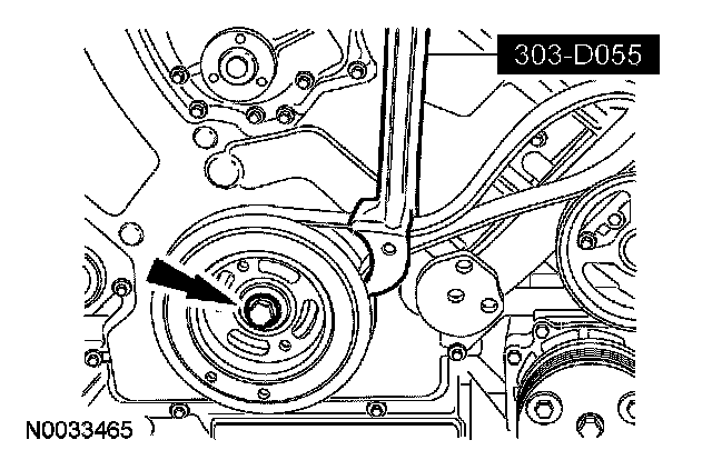 58. Install a new bolt and using the special tool to hold the pulley, tighten in 4 stages.