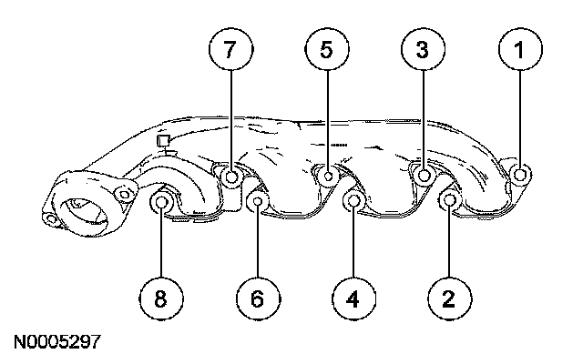 61. Install the LH exhaust manifold and the 8 new nuts.