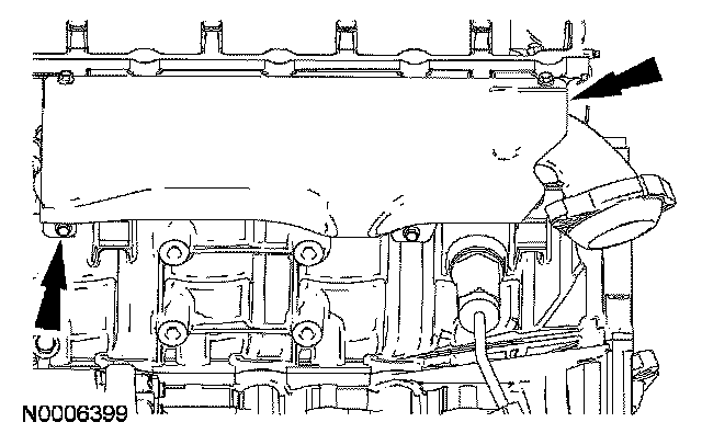 48. Install the oil sump. Using a straightedge, align the sump to the lower cylinder block. Tighten the bolts in sequence in 2 stages.