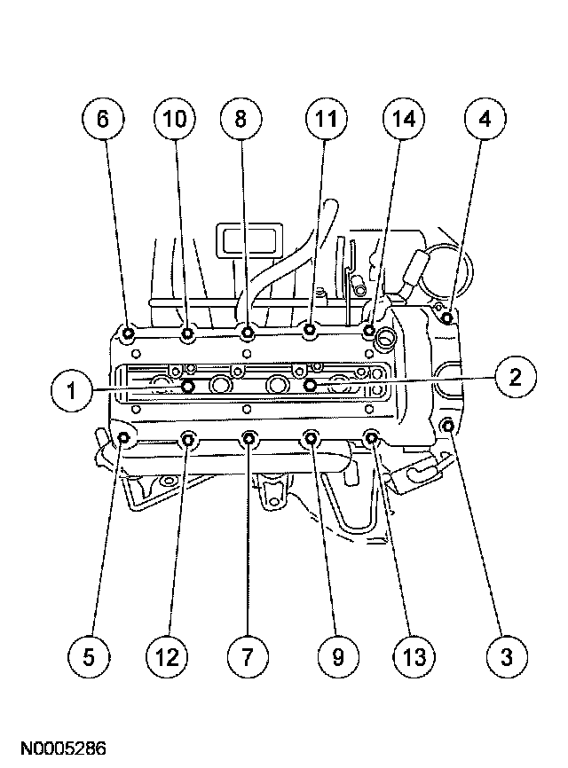 ^ Tighten the 7 bolts and the 3 studs in the sequence shown to 20 Nm (15 ft. lbs.).