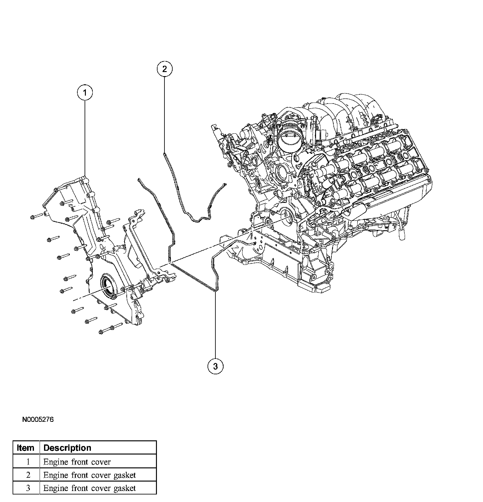 CAUTION: During engine repair procedures, cleanliness is extremely important. Any foreign material, including any material created while cleaning gasket surfaces, that enters the oil passages, coolant passages or the oil pan can cause engine failure.