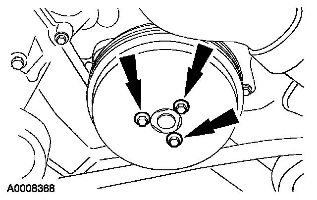 7. Remove the accessory drive belt idler pulley. For additional information, refer to Drive Belts, Mounts, Brackets and Accessories.