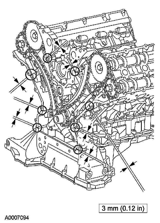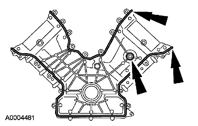 3. NOTE: If the front cover is not secured within 4 minutes of sealant application, the sealant must be removed and the sealing area cleaned with metal surface cleaner. Allow to dry until there is no sign of wetness, or 4 minutes, whichever is longer. Failure to follow this procedure can cause future oil leakage.