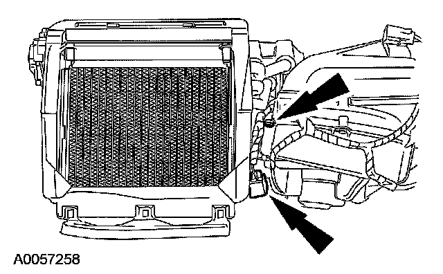 2. Remove the 2 screws which connect the air inlet housing to the evaporator core housing.
