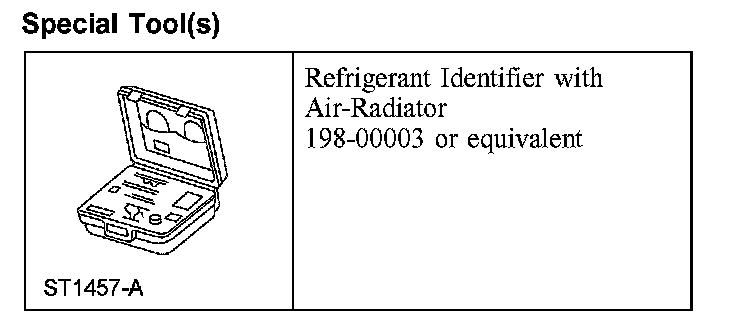 1. NOTE: An A/C refrigerant analyzer must be used to identify gas samples taken directly from the refrigeration system or storage containers prior to recovering or charging the refrigerant system.