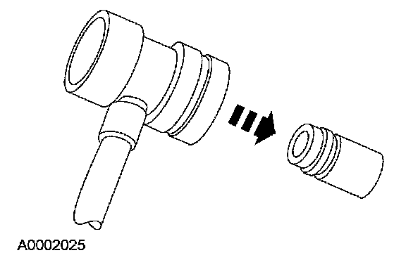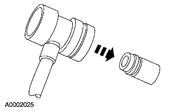 2. Remove the A/C charging valve cap from the high-pressure service gauge port valve.