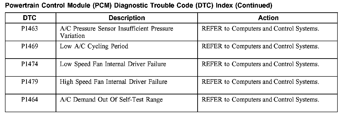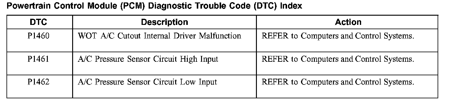 Powertrain Control Module (PCM) Diagnostic Trouble Code (DTC) Index