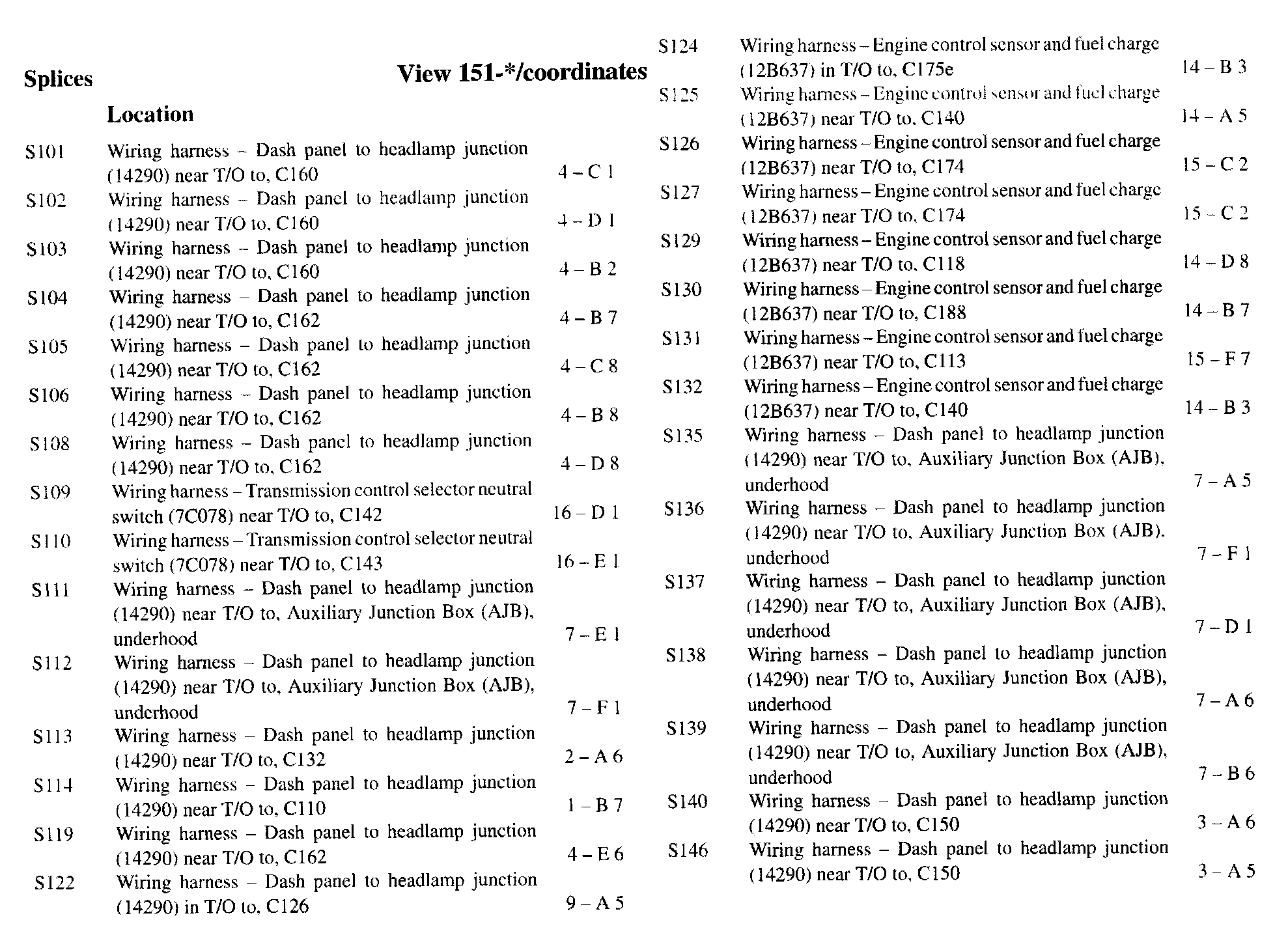If a link on the Splices Location Index to a View is not provided, that means that the Splices and/or View in question does NOT apply to the vehicle model selected.