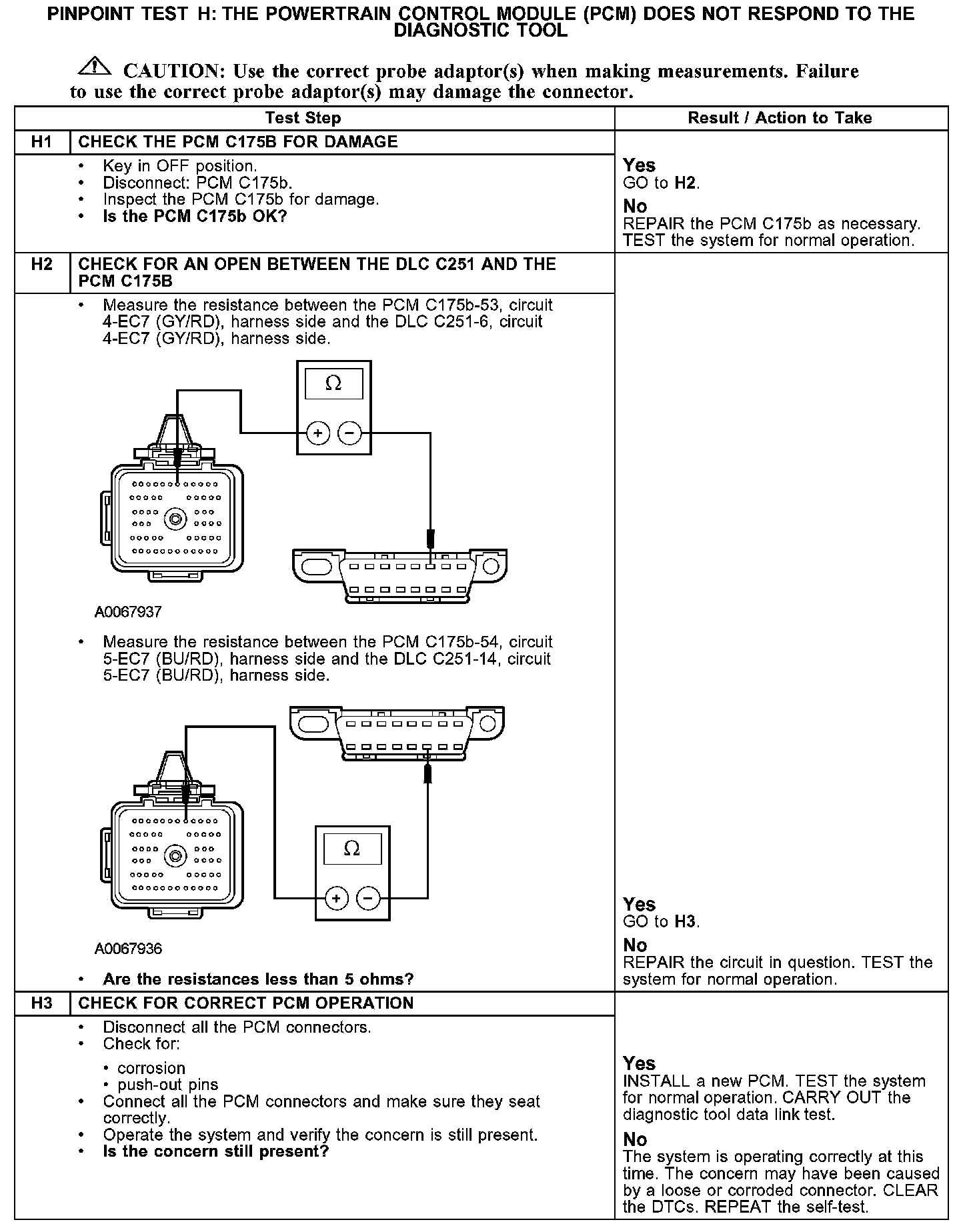 Test H: The Powertrain Control Module (PCM) Does Not Respond To The Diagnostic Tool
