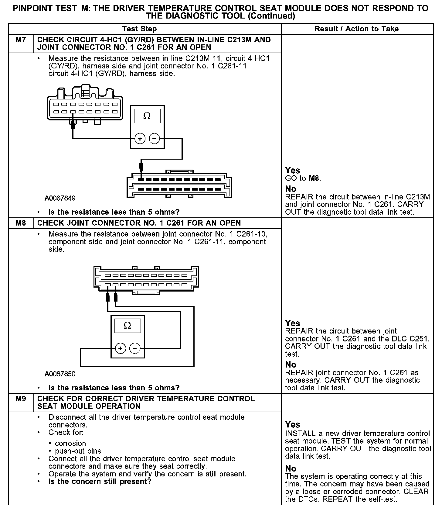 PINPOINT TEST M: THE DRIVER TEMPERATURE CONTROL SEAT MODULE DOES NOT RESPOND TO THE DIAGNOSTIC TOOLM1-M3:
