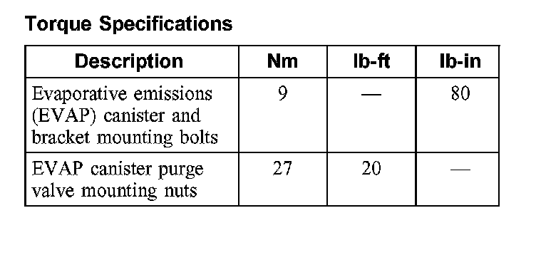 Evaporative Emissions System: Specifications