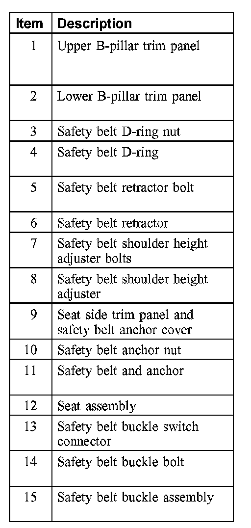 Safety Belt System - Exploded View, Front