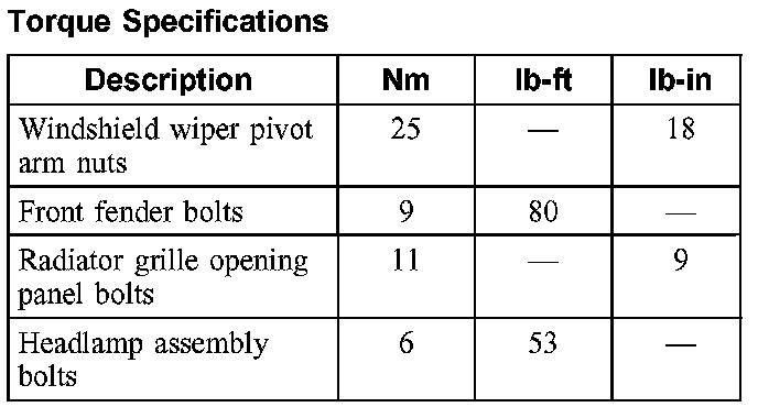 Torque Specifications: