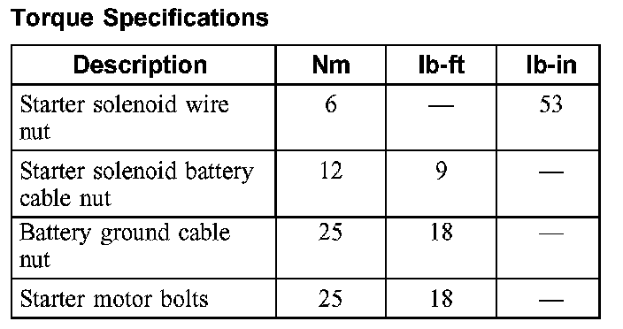 Torque Specifications: