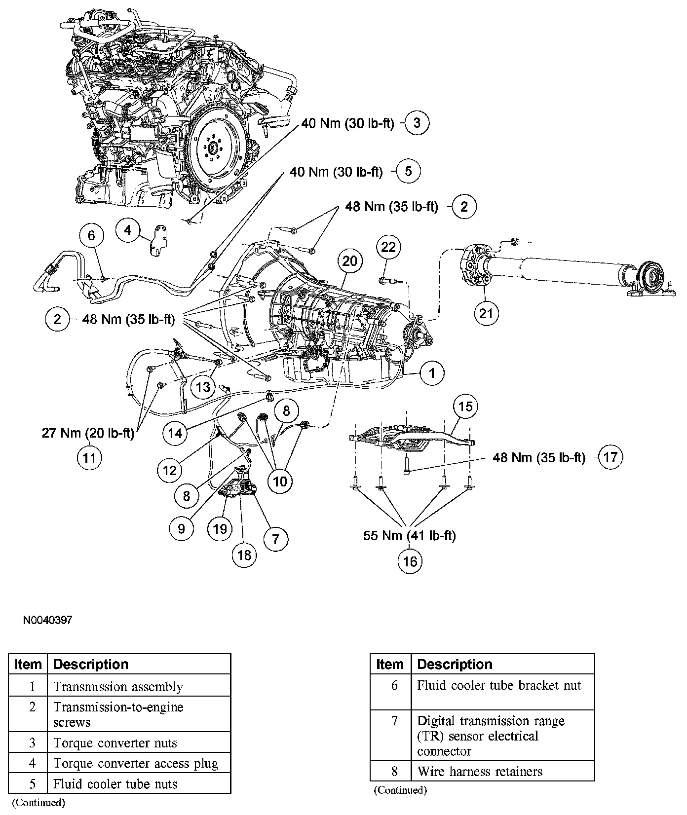 ^ If installing a new or a Ford-authorized remanufactured transmission, install the in-line transmission fluid filter that is supplied.