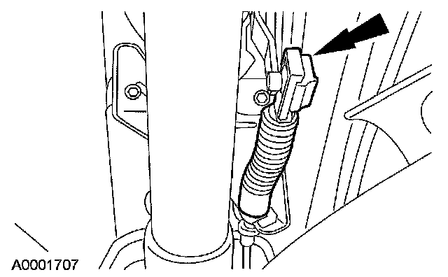 2 Depress the tab and slide the transmission selector lever cable out of the selector lever cable bracket.