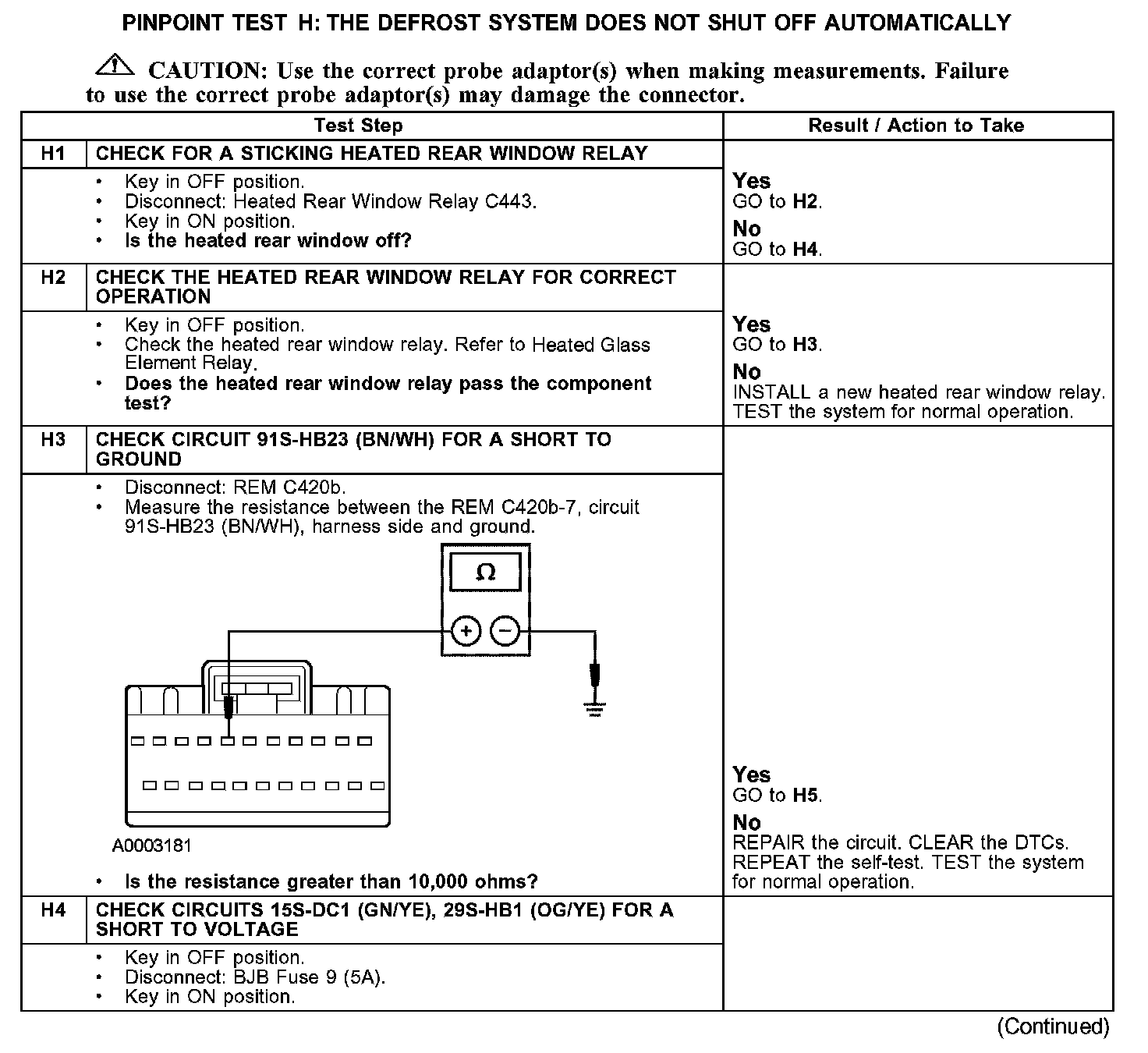 PINPOINT TEST H: THE DEFROST SYSTEM DOES NOT SHUT OFF AUTOMATICALLYH1-H4: