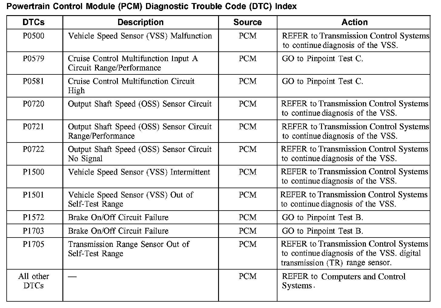 Powertrain Control Module (PCM) Diagnostic Trouble Code (DTC) Index