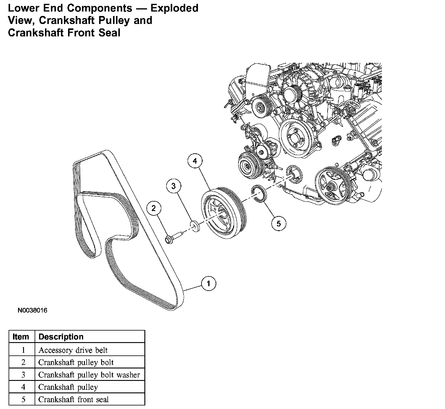 Lower End Components - Exploded View, Crankshaft Pulley And Crankshaft Front Seal: