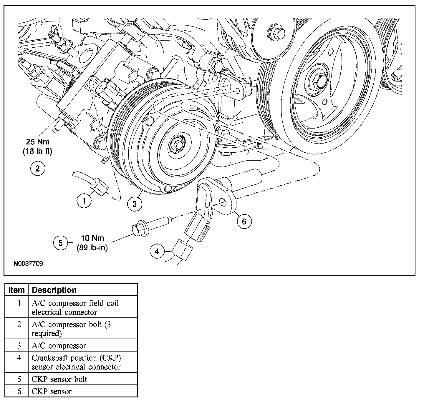 7. NOTE: It is not necessary to remove the A/C compressor bolts.