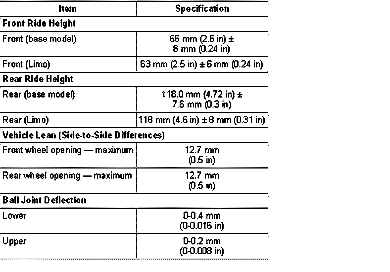 Torque Specifications: