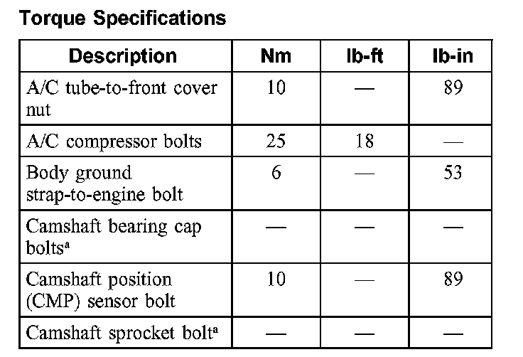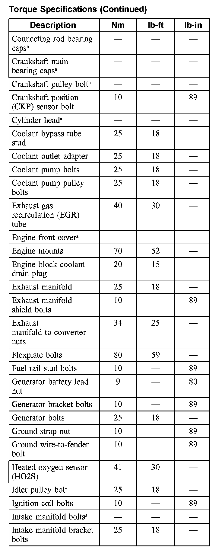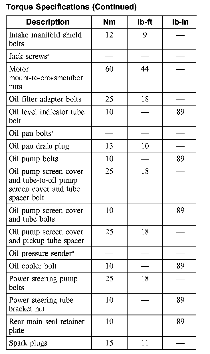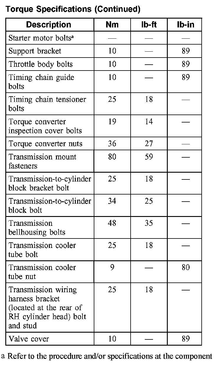 Torque Specifications: