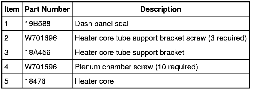 NOTE: If a heater core leak is suspected, the heater core must be pressure leak tested before it is removed from the vehicle.