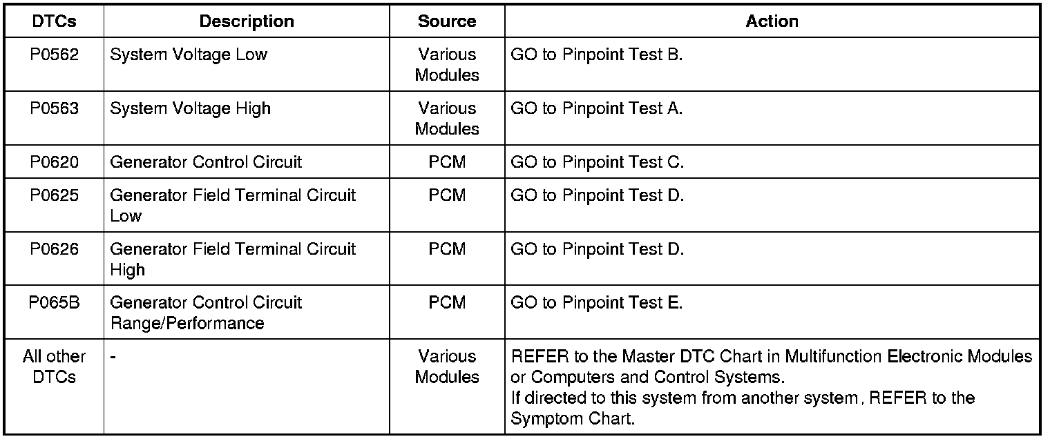 Diagnostic Trouble Code (DTC) Chart
