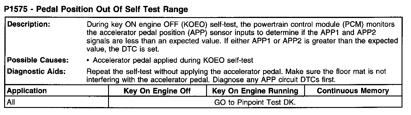 Note 1: DTC P1000 is ignored in the key ON engine OFF (KOEO) and key ON engine running (KOER) self-tests. Disregard DTC P1000 and continue as directed.