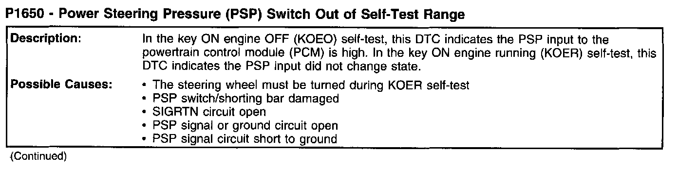 Note 1: DTC P1000 is ignored in the key ON engine OFF (KOEO) and key ON engine running (KOER) self-tests. Disregard DTC P1000 and continue as directed.