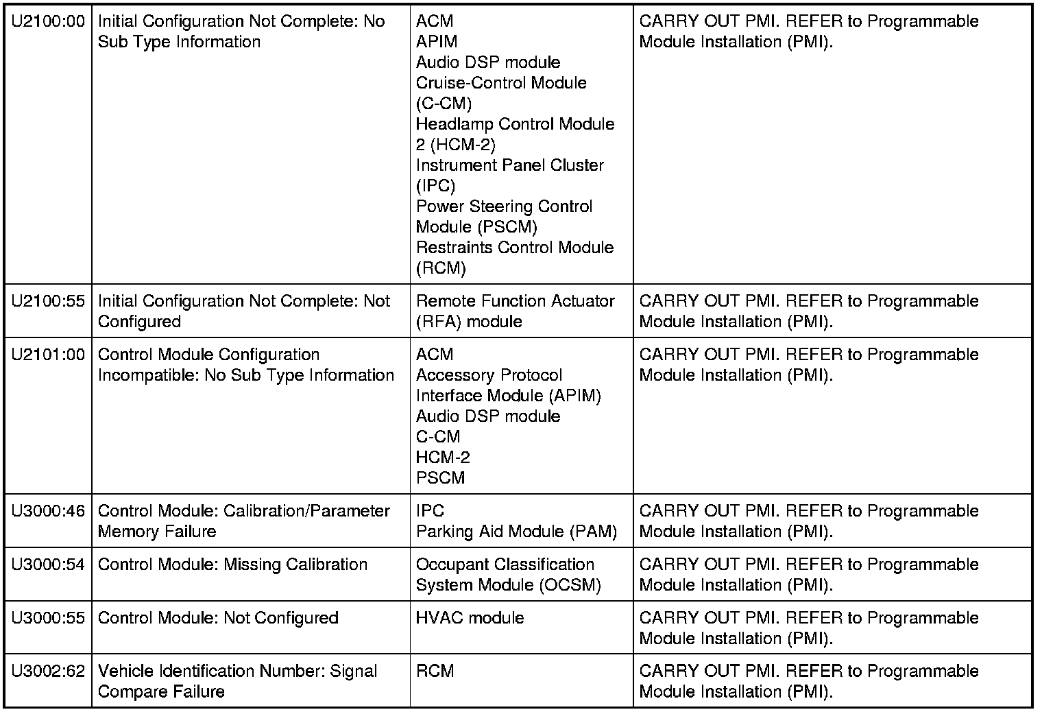 NOTE: Some modules on this vehicle utilize a 5-character DTC followed by a 2-character failure-type code. The failure-type code provides information about specific fault conditions such as opens, or shorts to ground. Continuous Memory DTCs have an additional 2-character DTC status code suffix to assist in determining DTC history.
