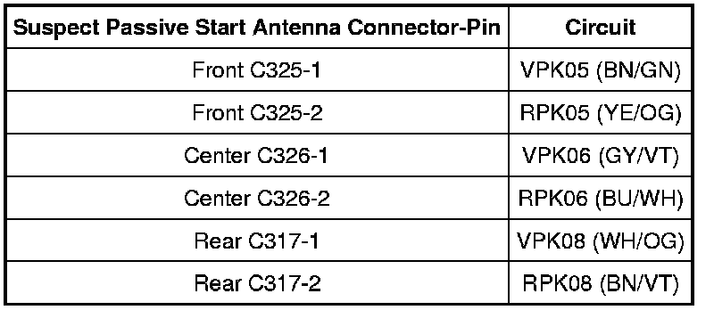 F4 CHECK THE PASSIVE START ANTENNA CIRCUITS FOR A SHORT TO GROUND