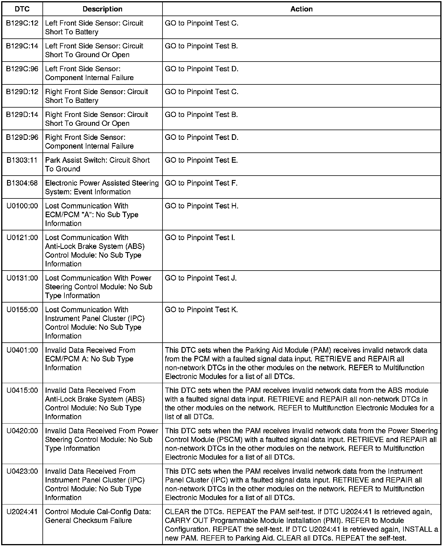 NOTE: This module utilizes a 5-character DTC followed by a 2-character failure-type code. The failure-type code provides information about specific fault conditions such as opens, or shorts to ground. Continuous memory DTCs have an additional 2-character DTC status code suffix to assist in determining DTC history.